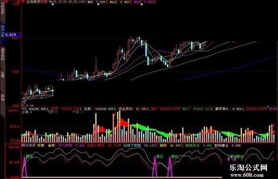买入时机: IF(CROSS(J,3),65,0),colorFF00FF,linethick3;