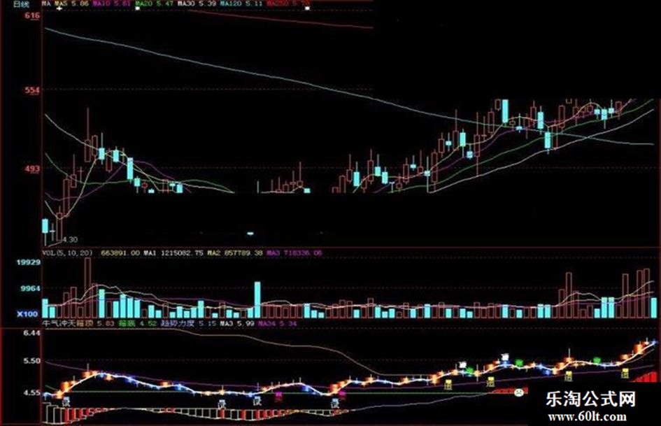 1.股价横盘,牛气冲天白线与箱顶线粘合,股价向上突破,出现"追"是最佳买入时机。