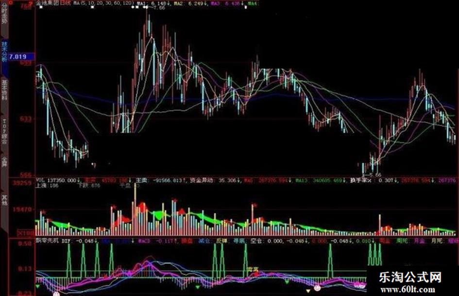 庄家吸筹:IF((((((((VAR1A <= VAR4) AND (VAR1A <= VAR5)) AND (VAR1A <= VAR6)) AND (VAR1B >= VAR4)) AND (VAR1B >= VARF)) AND (VAR16 > 0)) AND (VAR19 > 0)),0.5,0),LINETHICK2,COLOR66FF00;