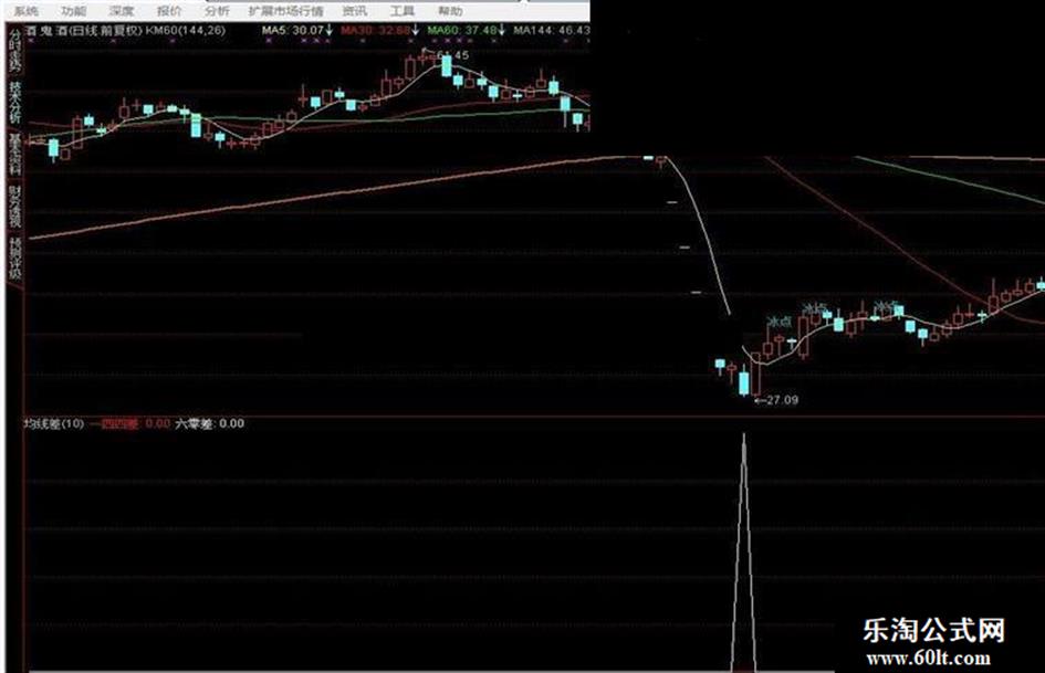 六零差:IF(MA(C,1)<MA(C,60)*0.55,100,0),COLORWHITE;