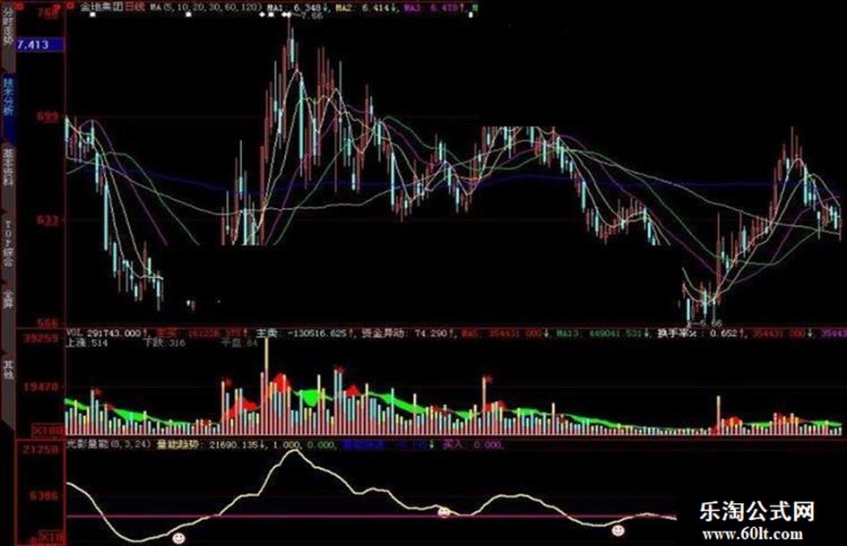 量能趋势:EMA(X,N1),LINETHICK2,color66FFFF;