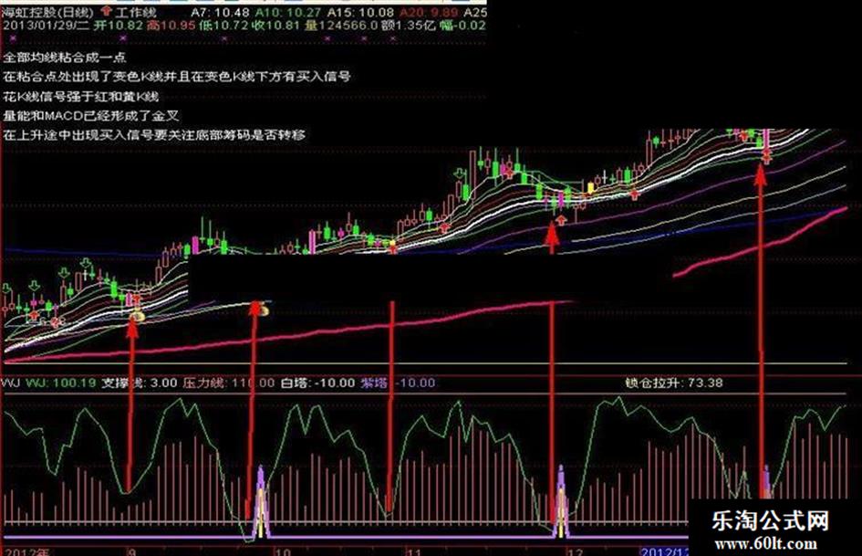紫塔:IF(CROSS(J,1),50,-10),COLORFF6EC7,LINETHICK3;
