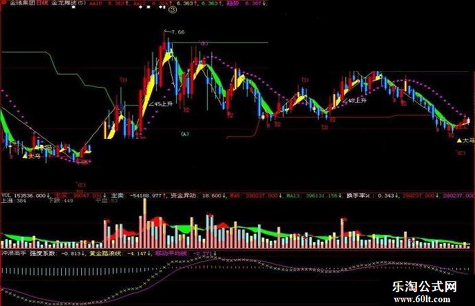 黄金踏浪线: EMA(HIGH+LOW+2*CLOSE/4,21)*10-EMA(HIGH+LOW+2*CLOSE/4,89)*10, CROSSDOT;