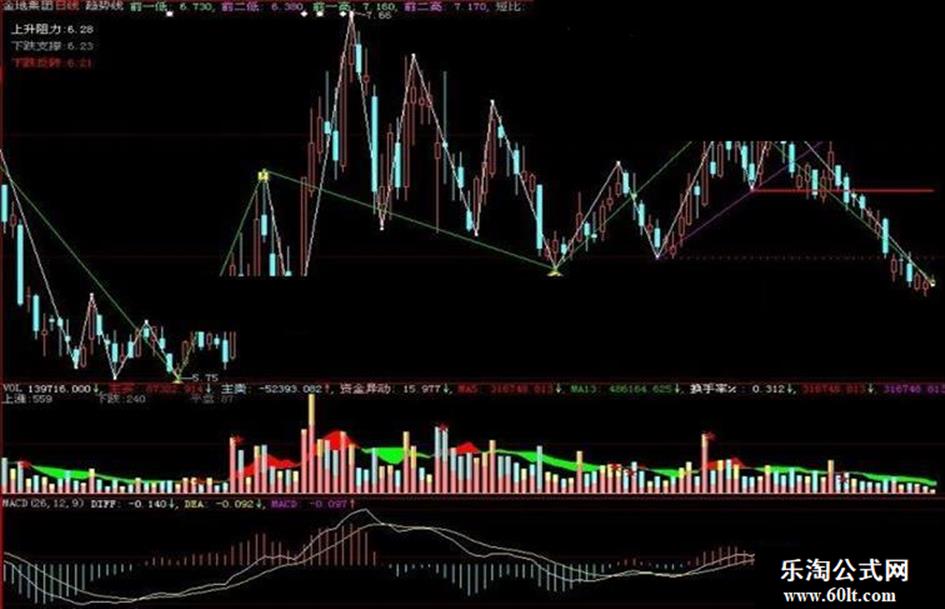G3:=F3>REF(F3,1); I3:=BACKSET(G3,2); LZ:=I3>REF(I3,1); {长期低点,也可供引用}