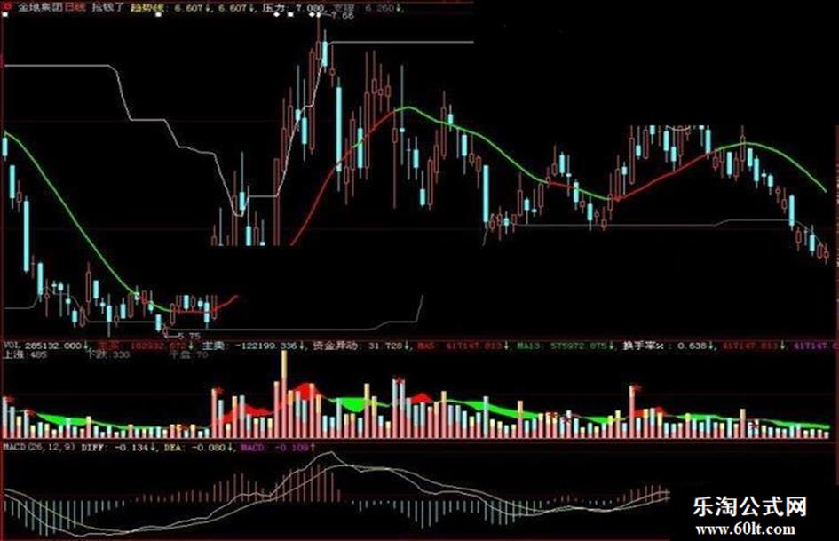 A:=AMOUNT/V/100;VARA:=EMA((((A-EMA(A,13))/EMA(A,13))*(0-100)),5);操盘线:=EMA