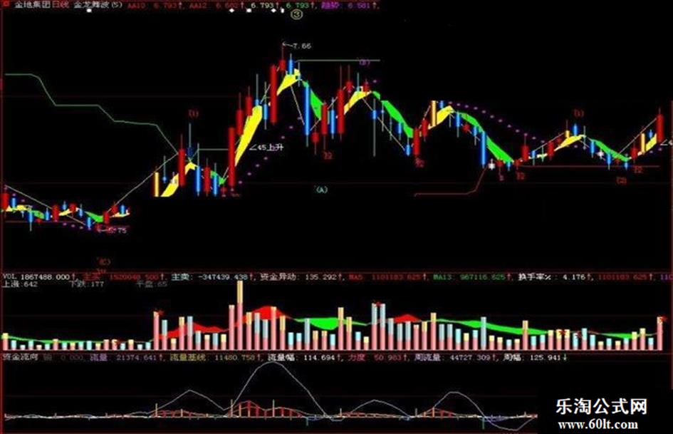 流量幅:IF(((LLJX > 0) AND (ZJLL < 0)),ABS(QZJJ),IF((((LLJX < 0) AND (ZJLL < 0)) AND (LLJX < ZJLL)),(0 - QZJJ),QZJJ)),COLORWHITE;