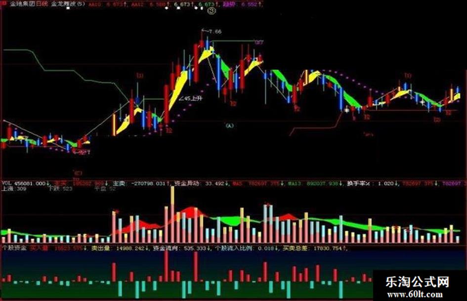 买卖总差:SUM(资金流向,5),COLORYELLOW,LINETHICK0;