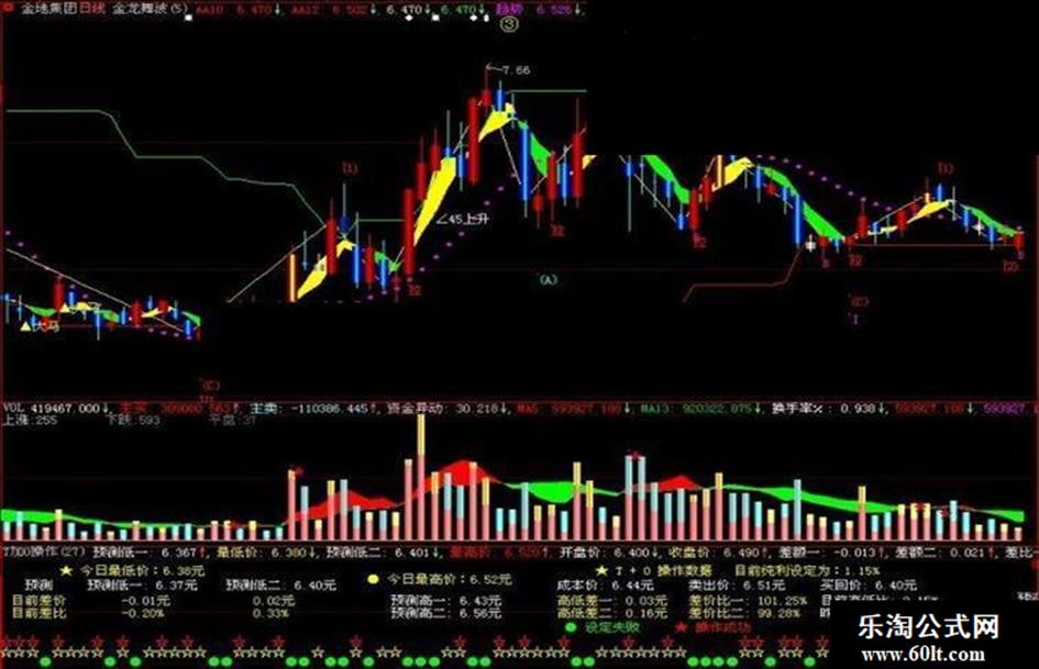 DRAWTEXT(DISPSTATUS=2 and low<预测低一 and Amod=1,30,'预测一 ☆'),coloryellow;