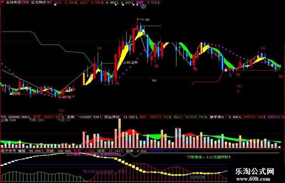 DRAWTEXT(Var22 AND COUNT(Var22,30)=1,90,'下降通道,小心无量阴跌! ');