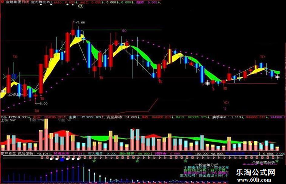 DRAWTEXT(综合分数<40 and 综合分数>0 and 股价A>5 and 股价A<25 and BARSTATUS=2,40,'股票风险分析:低位调整区 '),ALIGN2,colorff00ff;