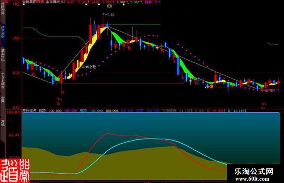 月顶:if(AAA+103>100,100,AAA+103),colorFF3333,linethick1;