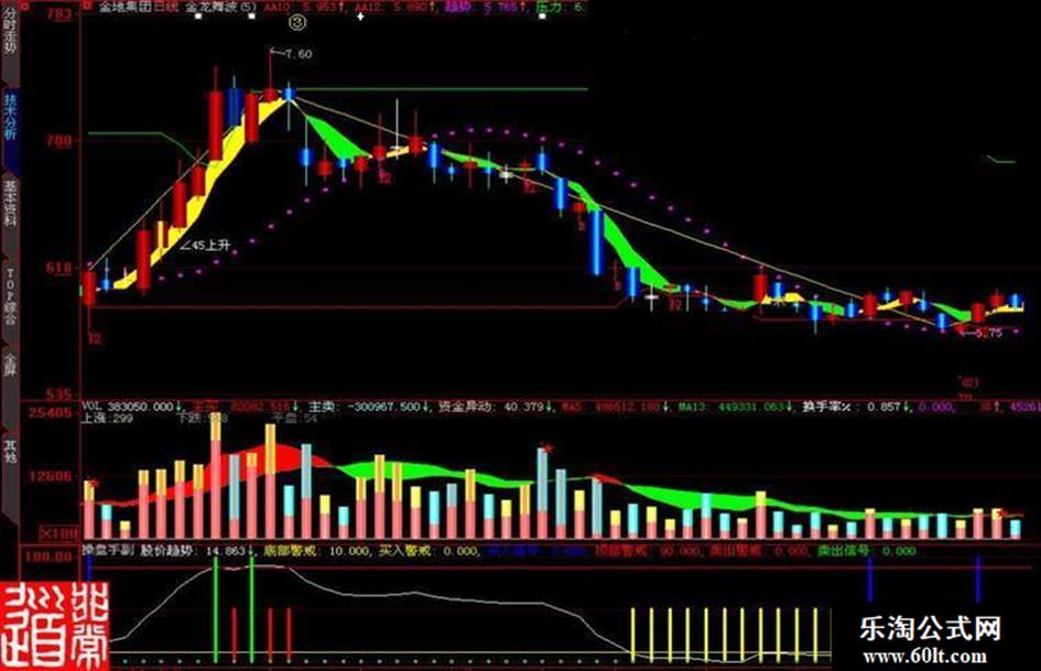 买入警戒: IF(股价趋势<=10,50,0),stick,linethick3,coloryellow;
