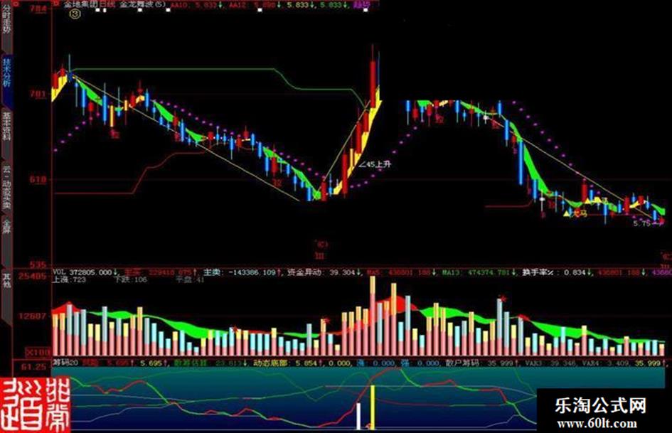 动态底部:EMA(IF(L<= LLV(l,99),SMA(ABS(L-REF(L,1)),99,1)/SMA(MAX(L-REF(l,1),0),99,1),0)*5,3),COLORYELLOW;