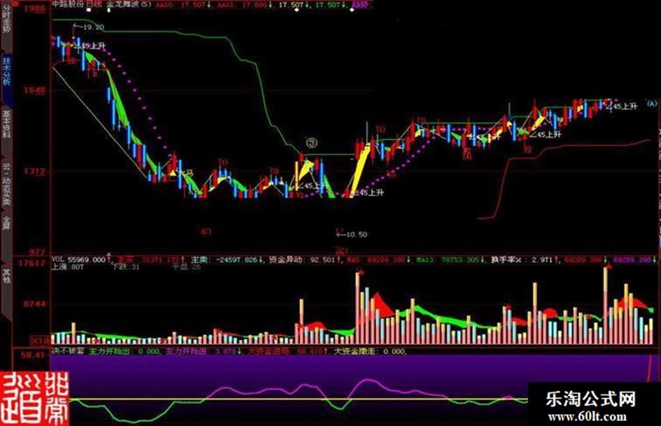 主力开始进: IF(V4>=0,V4,0),COLORmagenta,LINETHICK2;
