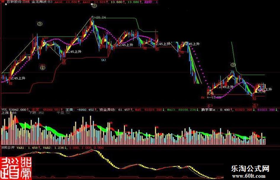 STICKLINE(Var1>REF(Var2,1),REF(Var2,1),Var2,8,0),colorRED;