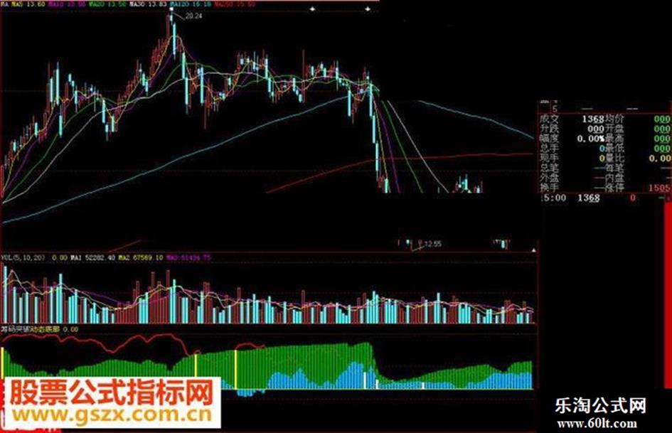 动态底部:EMA(IF(L<= LLV(l,99),SMA(ABS(L-REF(L,1)),99,1)/SMA(MAX(L-REF(l,1),0),99,1),0)*5,3),COLORYELLOW;