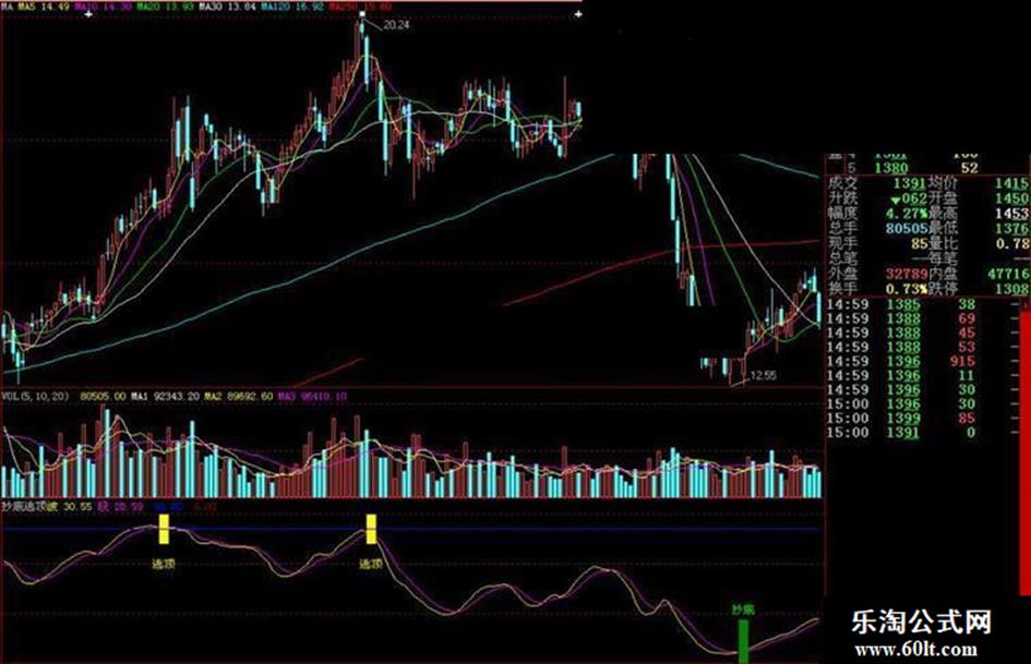 DRAWTEXT(FILTER(Var7,5)=1,70,'逃顶'),LINETHICK3 ,COLORYELLOW ;