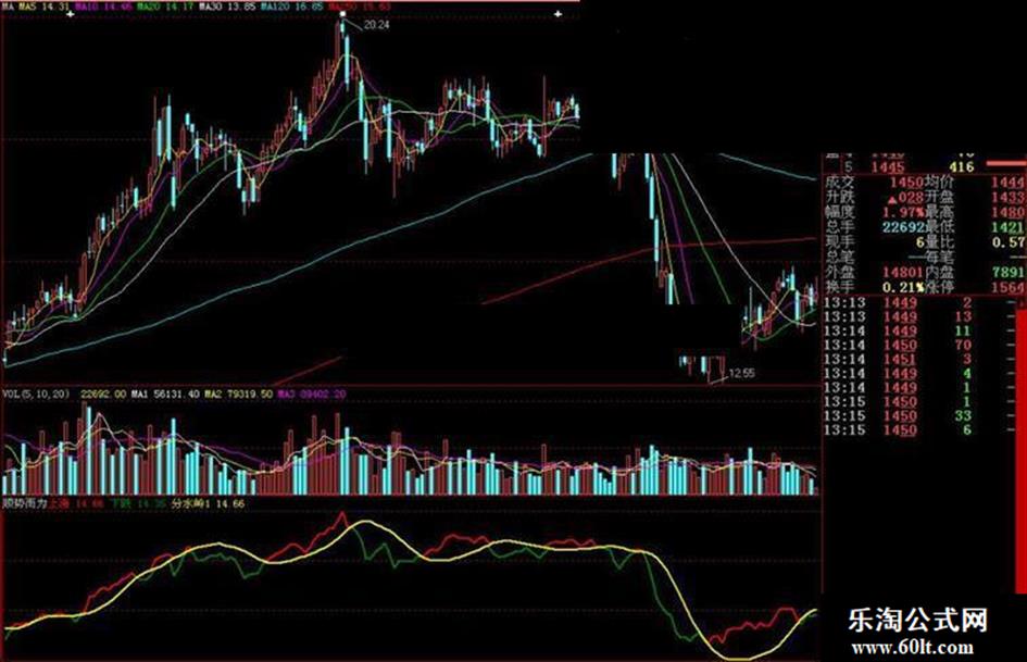下跌:if(A<分水岭,A,分水岭),LINETHICK2,COLORGREEN;