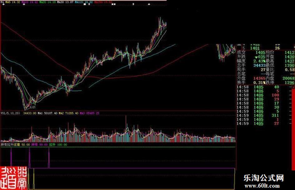 Var8:=IF(CLOSE>Var1 AND Var3 AND CROSS(Var1,Var2) AND (VOL-Var5)/Var5>0.5 AND CLOSE>MA(REF(CLOSE,1),3) AND SMA(Var7,5,1)>0,100,50);