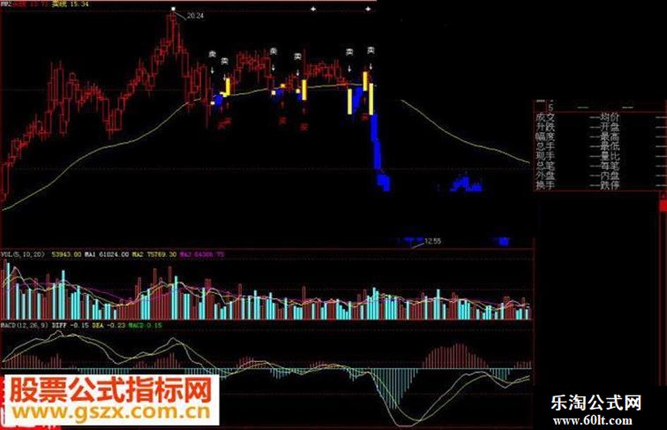 stickline(cross(买线,卖线) or cross(卖线,买线),open,close,6,0),coloryellow;