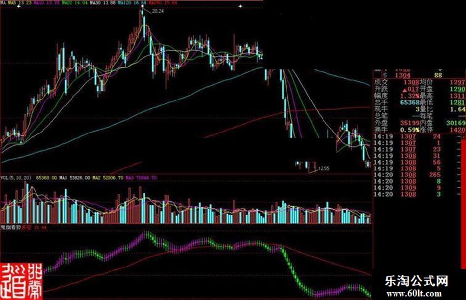 STICKLINE(收盘价1<开盘价1,收盘价1,开盘价1,5,0),COLOR00ff00;
