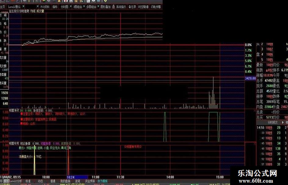 三个颜色的分时信号,可靠度梯次增加,以红色的概率最大,黄色最小。本公式信号比较少,不是所有的涨停股都会有信号,所以更不会象多数分时副图那样信号很多。