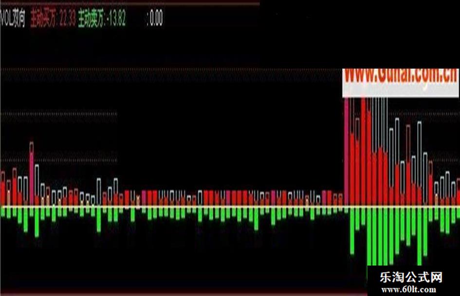 主动卖盘:=IF(CLOSE>OPEN,0-VAR1*((HIGH-CLOSE)+(OPEN-LOW)),IF(CLOSE<OPEN,0-VAR1*(HIGH-LOW),0-VOL/2)),COLOR00FF00,POINTDOT;