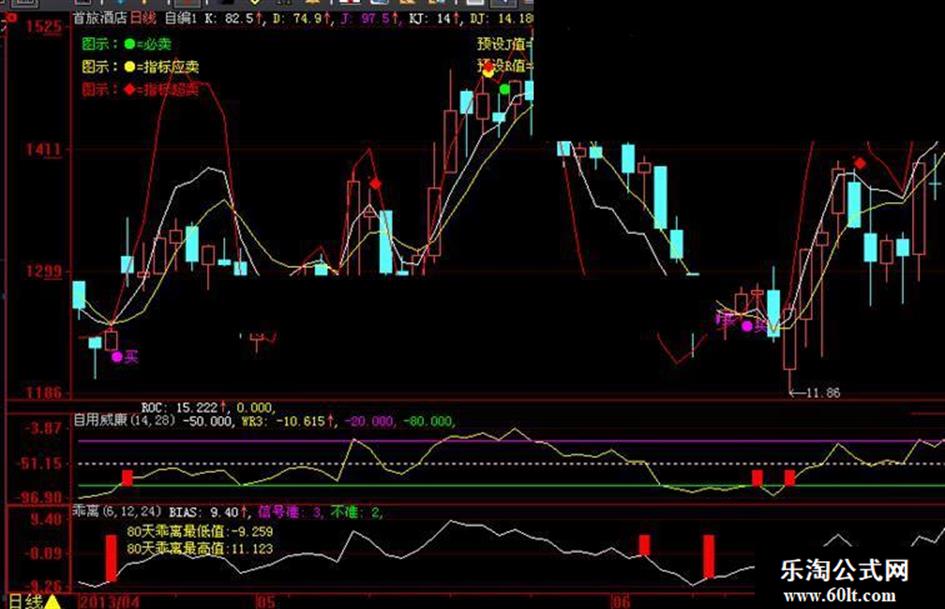 第二、C\J\R3个指标都已经超过临界值(CCI大于100,J大于90,R大于70),其中有任何一个指标小于昨天,虽然当日股价尚未回调,亦表示有回调要求,公式会给出应卖的提示;