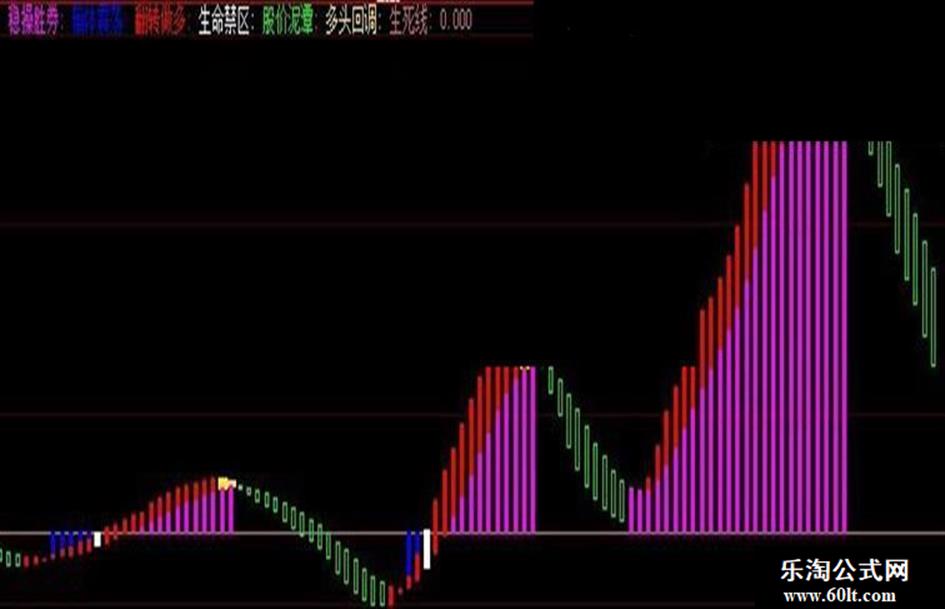 稳操胜券:STICKLINE(((VAR7 > REF(VAR7,1)) AND (VAR7 > 0)),0,VAR9,5,0),COLORFF00FF;