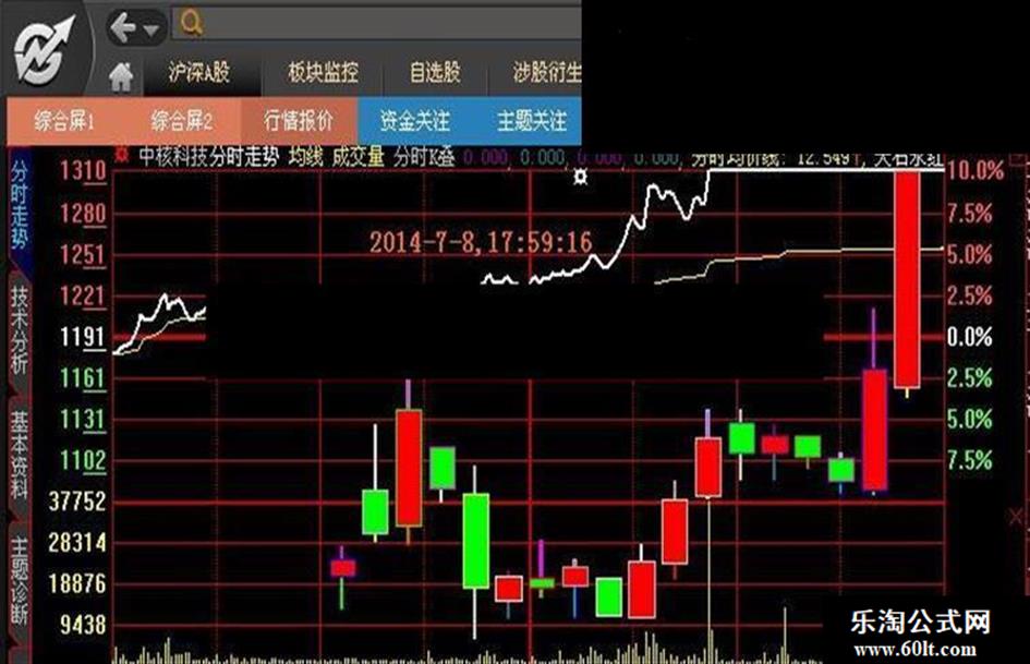 本指标就是针对上述问题编写的一个指标,在分时主图中加入了近10多个交易日的K线图,这样在查看分时主图时,就能够在不进行任何切换操作的情况下查看近来K线走势图以及自己专用的各个分时副图。