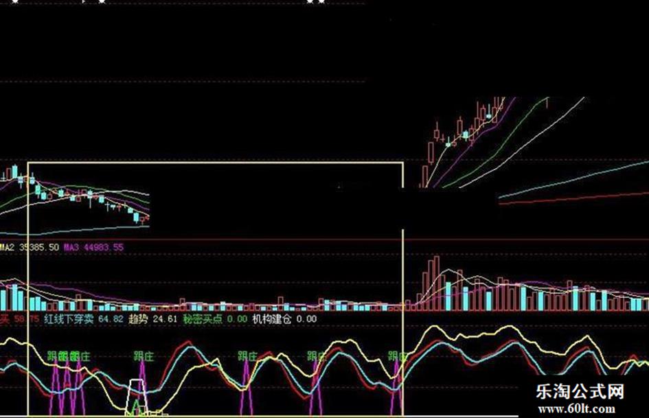 买入时机: IF(CROSS(J,3),65,0),COLORFF00FF,LINETHICK2;