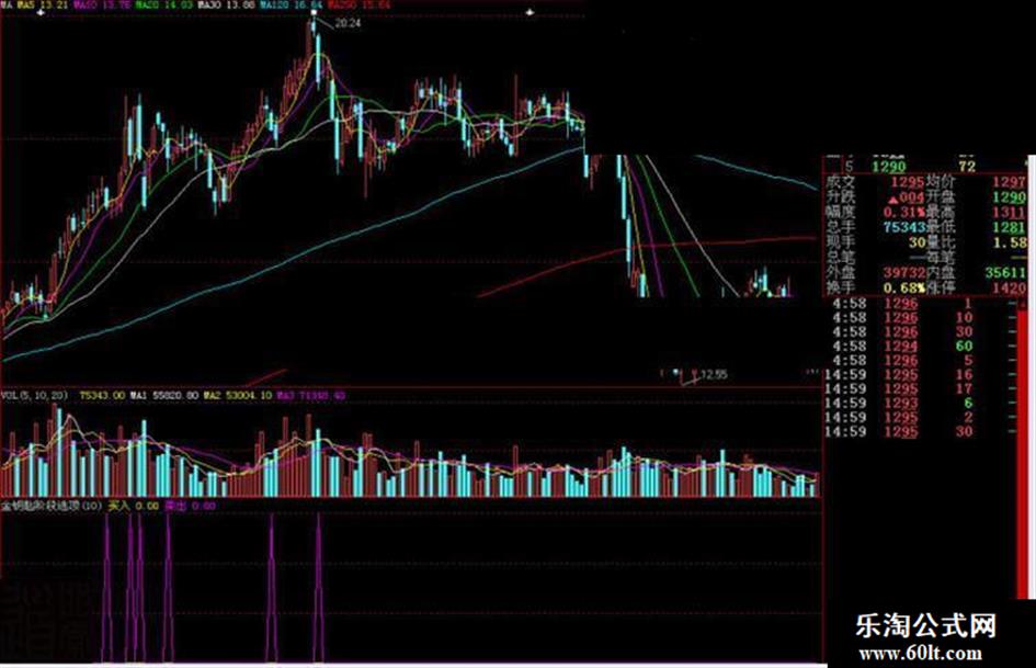 Var9:=MA(VOL/CAPITAL,30)*MA(VOL,60)/10000+MA(CLOSE,30);