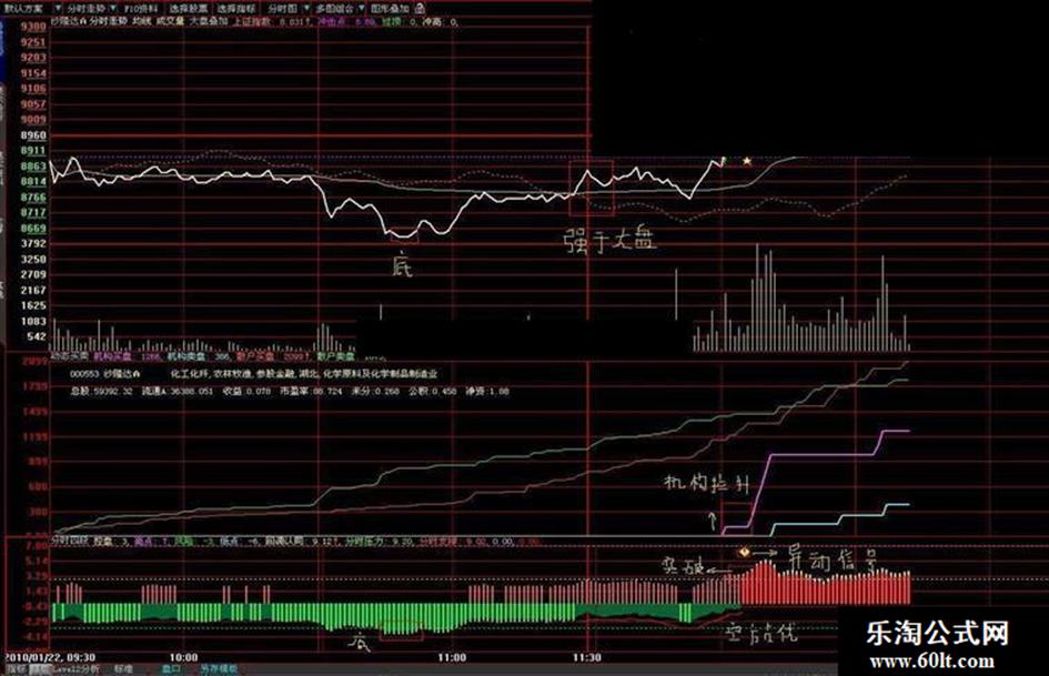 (1.红色柱代表买进强度,绿色柱代表卖出强度,黄色柱代表庄控股强度,蓝色柱代表洗盘。