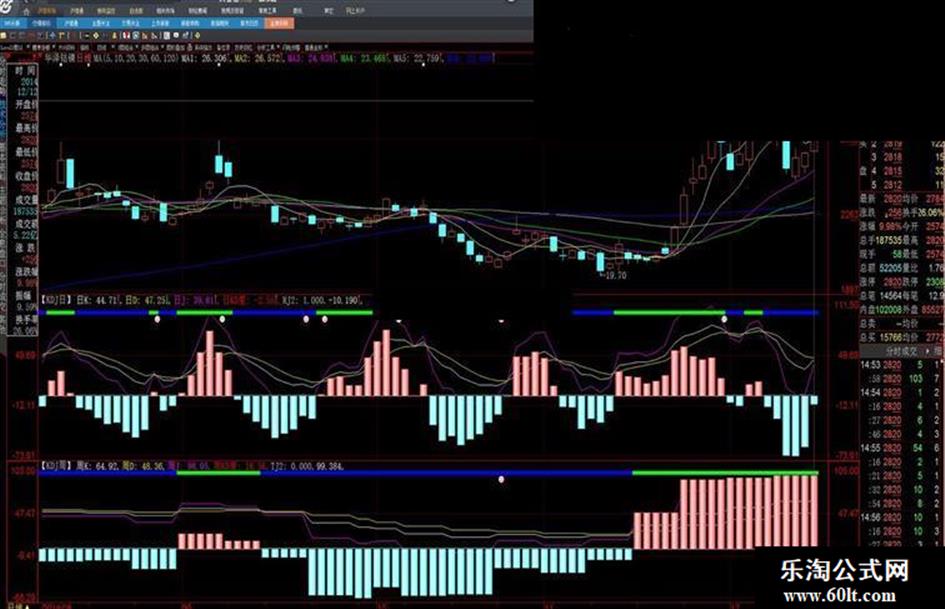 一般来说,周KDJ的上涨与下跌,与趋势相关性很大,周KDJ上涨,一波中级反弹行情会出现,周KDJ下跌,一波中级回调行情会出现,利用周KDJ看趋势,日KDJ进行买卖。不存在未来数据,只利用大智慧原有的KDJ指标。
