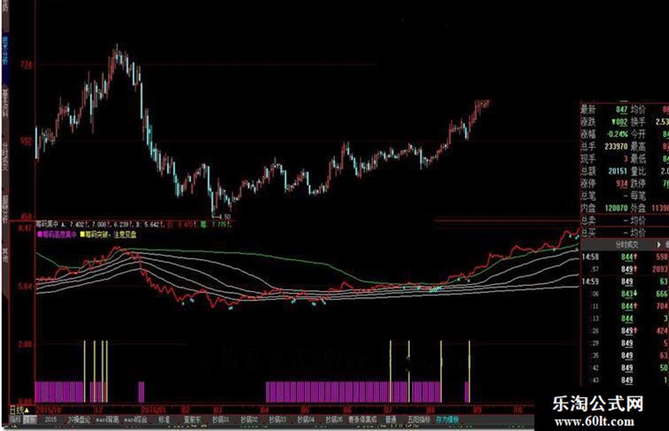 DRAWTEXTABS(95,5 ,'■筹码突破,注意变盘'),COLORyellow,linethick1;