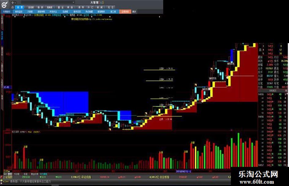 1.收盘价在黄色阶梯出场线上方表示短期上涨趋势,应伺机买入。