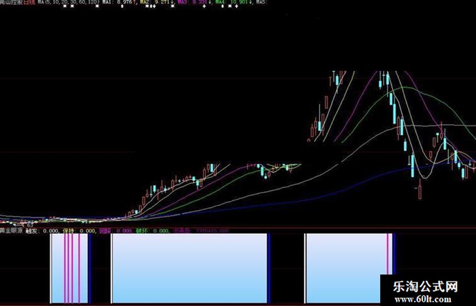 五日均线上穿十日均线 五日均线再上传三十日均线 十日均线再上穿三十日均线形成的黄金三角就是均线黄金眼 表示股价已经突破了短期 中期压力 将开启一波涨势 其中回踩是股价盘中跌破三十日均线收盘拉回 表示三十日均线支撑有效 五日 十日均线有一条下穿三十日线表示黄金眼失败