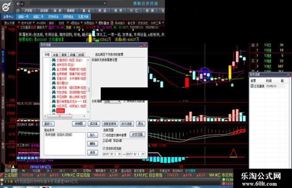 就自己捣鼓了一下还算满意。5月1日到6月1日就出了1票603169,效果还行。因为我对出票做了限制,所以出票率低,当然成功率才是关键。只要能稳定盈利,其他的我就不奢求了,呵呵