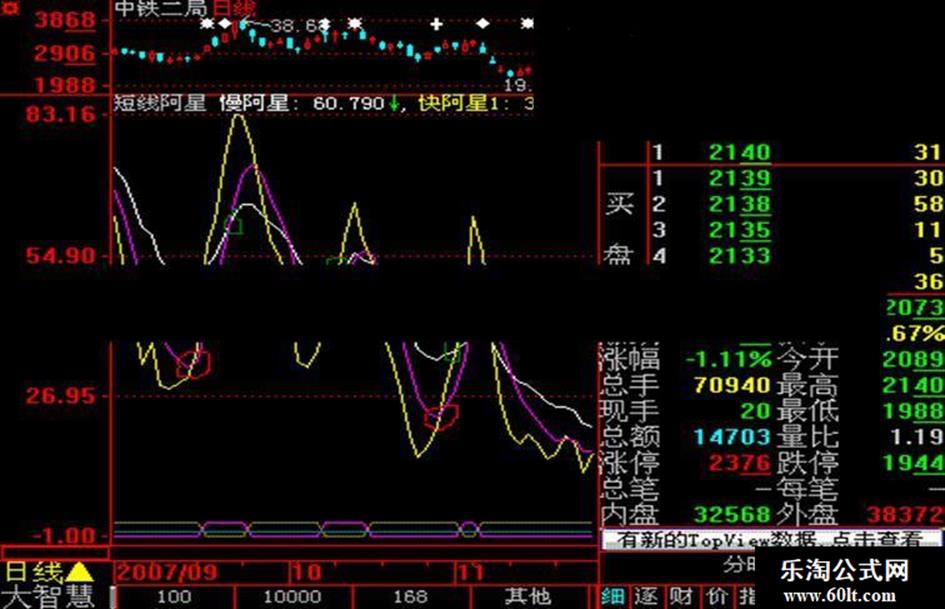 Var1:=(CLOSE-LLV(LOW,12))/(HHV(HIGH,12)-LLV(LOW,12))*100; 慢阿星: SMA(Var1,10,1); Var2:=(CLOSE-LLV(LOW,11))/(HHV(HIGH,11)-LLV(LOW,11))*100; 快阿星1: SMA(Var2,3,1); 快阿星2: SMA(快阿星1,3,1); 买进: IF(慢阿星<5 AND VOL>1.5*MA(VOL,5) AND CROSS(快阿星2,慢阿星),50,0); 卖出: IF(慢阿星>80 AND CROSS(慢阿星,快阿星2),60,0); Var3:=(HIGH+LOW+OPEN+2*CLOSE)/5; Var4:=REF(Var3,1); Var5:=SMA(MAX(Var3-Var4,0),10,1)/SMA(ABS(Var3-Var4),10,1)*100; 段底: IF(COUNT(Var5<20,5)>=1 AND COUNT(Var3=LLV(Var3,5),10)>=1 AND((c-ref(c,1))/(ref(c,1))>0.05) AND CLOSE>REF(OPEN,1) AND VOL>1.5*MA(VOL,5),60,0); Var6:=(2*CLOSE+HIGH+LOW)/4; Var7:=LLV(LOW,34); Var8:=HHV(HIGH,34); Var9:=EMA((Var6-Var7)/(Var8-Var7)*100,13); VarA:=EMA(0.667*REF(Var9,1)+0.333*Var9,2); 持仓: if(Var9>VarA,2,-1); 空仓: if(Var9<VarA,2,-1); VarB:=SMA(MAX(CLOSE-REF(CLOSE,1),0),7,1)/SMA(ABS(CLOSE-REF(CLOSE,1)),7,1)*100; 买: IF(REF(VarB,1)<20 AND (CLOSE/REF(CLOSE,1)-1)*100>9 AND CLOSE=HIGH,85,0); VarC:=(HIGH+LOW+OPEN+2*CLOSE)/5; VarD:=REF(VarC,1); VarE:=SMA(MAX(VarC-VarD,0),10,1)/SMA(ABS(VarC-VarD),10,1)*100; 底部:=IF(COUNT(VarE<=12,2),30,0); 买1: IF(CROSS(VarE,底部) AND VOL>1.5*MA(VOL,5),60,0);