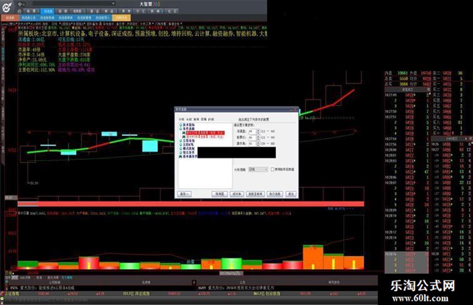 股票特征一:趋势向上、涨跌有量。(K线运行整体趋势向上,股价步入拉升区,股价意欲拉升;60分钟周期下倍量柱、多倍量柱频现,托起并抬高股价;股价下跌时多为快速缩量,但回调不破操作线。)