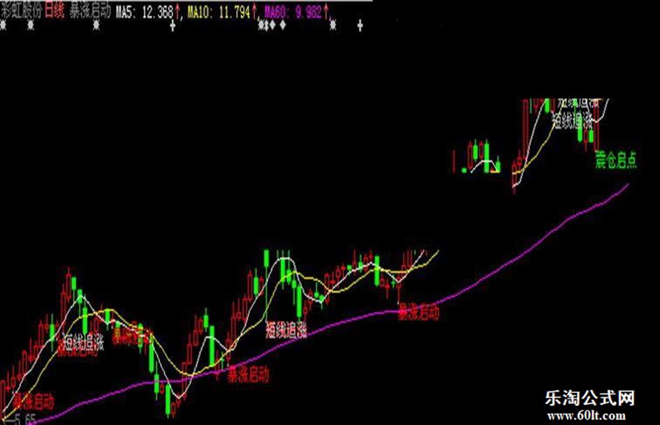 drawtext(COUNT(XG,3)=1 AND XG and c>ma(c,20),l-0.02,'暴涨启动'),colorred;