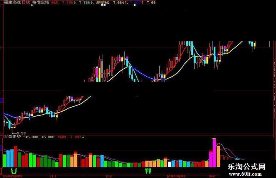 PARTLINE(多空线,DD),colorblue,linethick5;A:=(MA5>多空线);