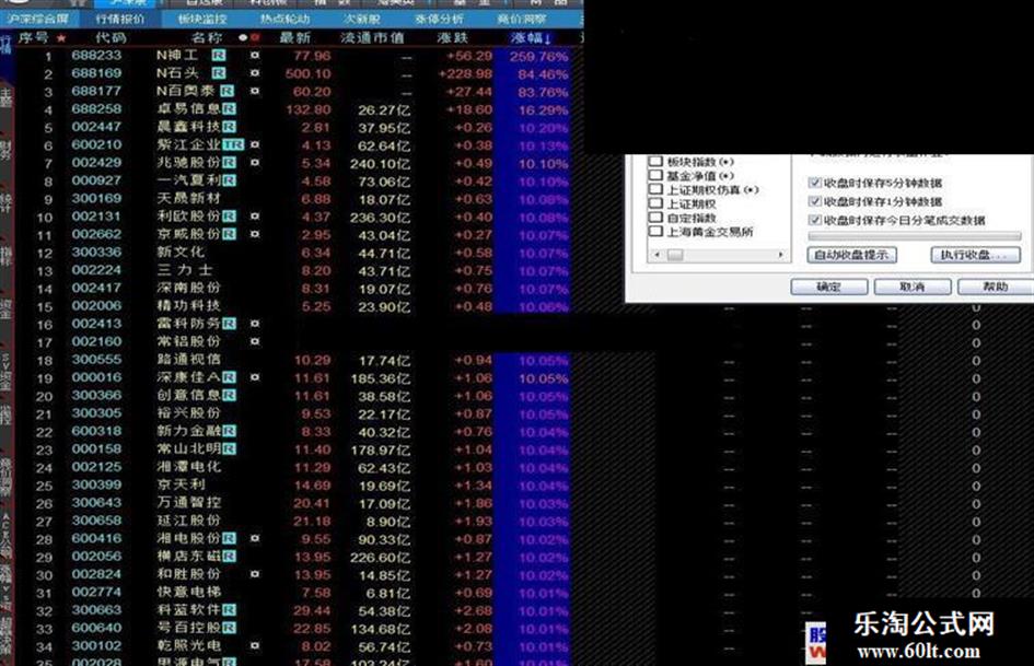 全部请求行情就可以涨停排序。点“执行收盘”就是全推一样数据
