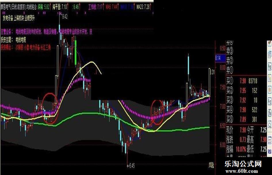 使用方法:股价在工作线(紫色圆点线)之上,海面附近,形成均线多头排列,最好是小阴小阳的爬升,但需要量能的配合,这是大体选股,剩下的操作需要结合另外的指标,进行确认。