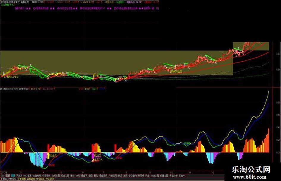 STICKLINE(MACD<=REF(MACD,1)AND MACD<0,0,MACD,0.55 ,0 ),COLORFFFF55;