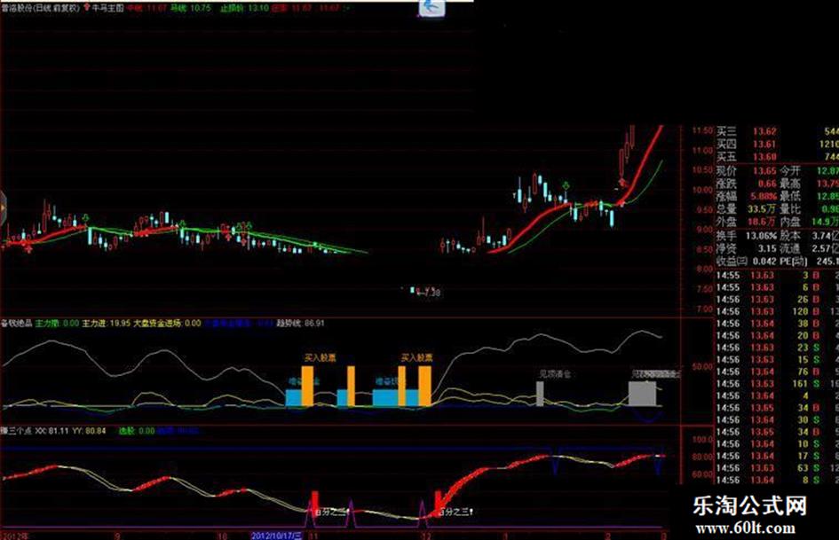 买入股票: STICKLINE(趋势线<=13 AND V12>13,0,50,5,0),COLOR0099FF;