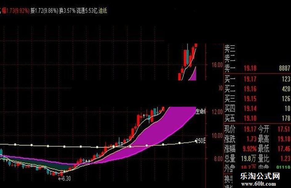 E:EMA(C,5);E1:EMA(C,12);E2:EMA(C,50),LINETHICK2;DRAWTEXT(ISLASTBAR,E2,'生命线'),LINETHICK3;