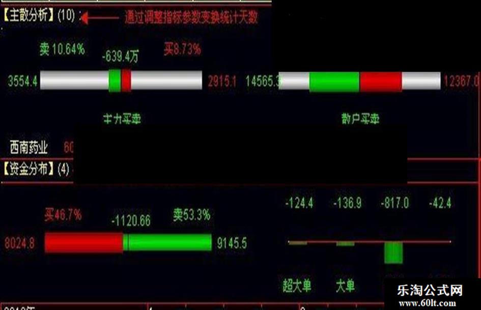 “精美制作立体显示资金系列3指标 ”中只能显示当日资金流向分布,现通过“相应替换”