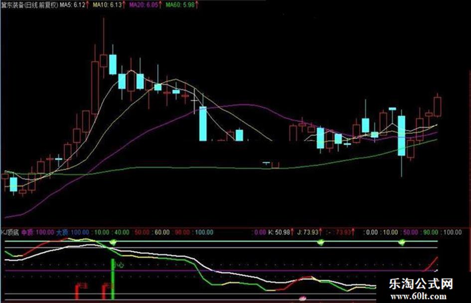 操作说明:此KJ顶底指标对判断短线顶底很有帮助,无论在牛市和熊市都有很好的表现,并加入了自己通过实践验证的几种买入指标提示。