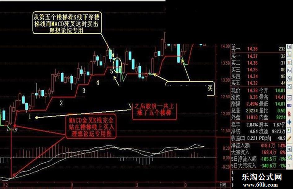 一、配合副图MACD底部金叉,K线站上第一个楼梯线买入。